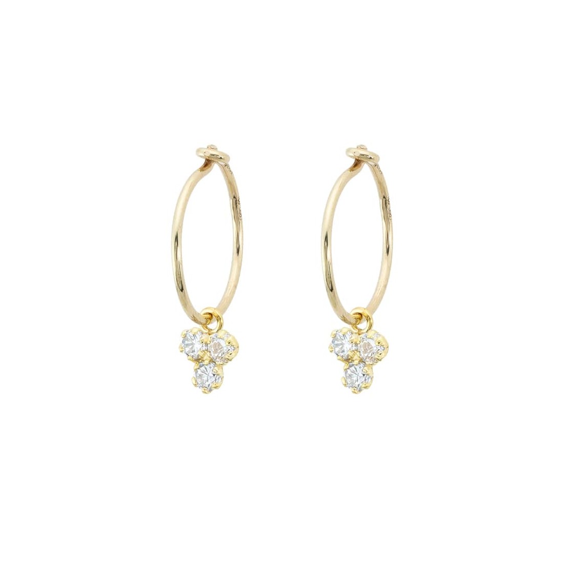 Hoop earrings 10 mm hanging clover zircons 3mm "Oro de 9 kilates" "Handmade"
