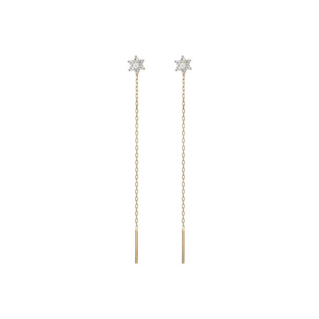 Chain earrings with zirconia flower and section (6.5 cm of chain)