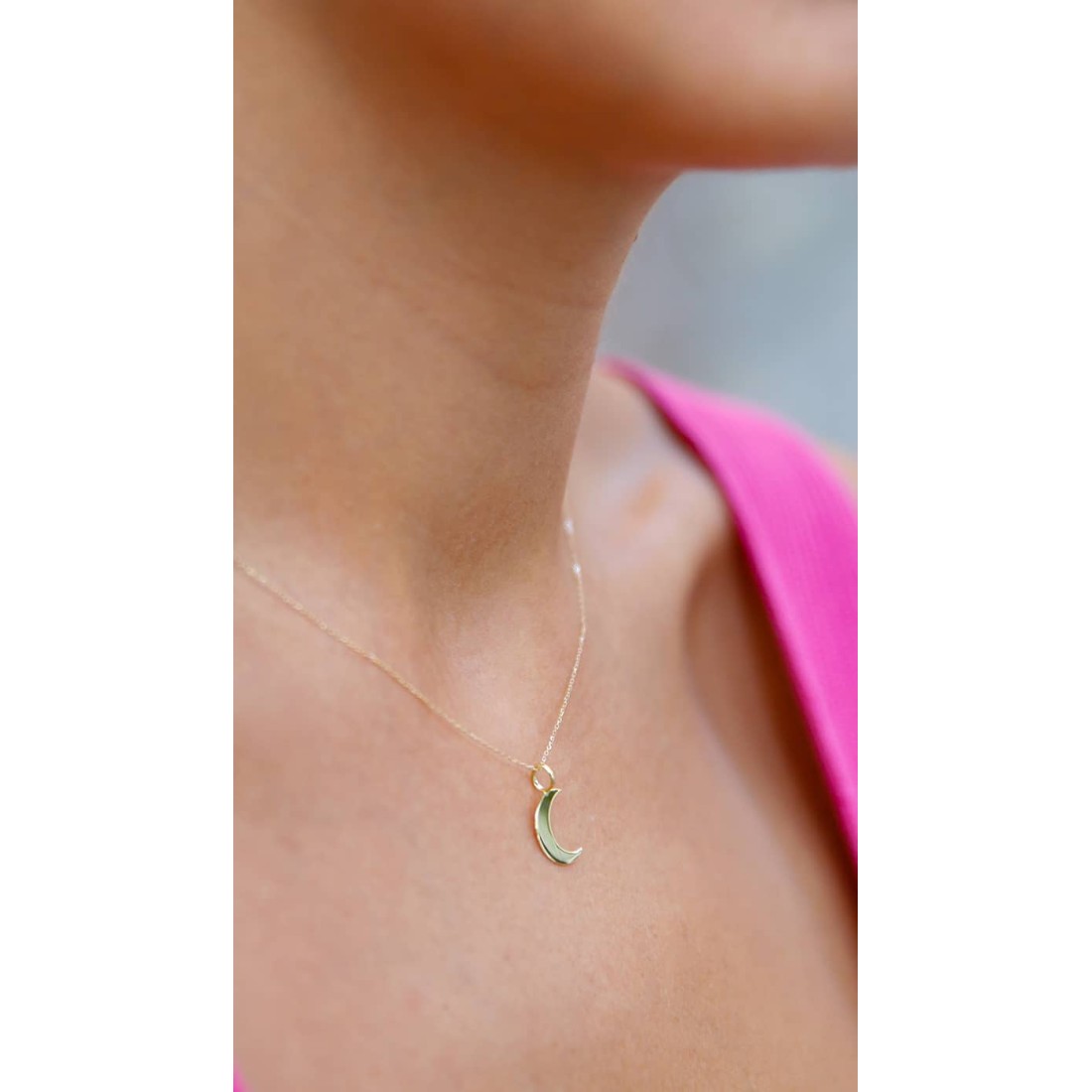 Colgante con forma de luna con reasa hilo CADENA NO INCLUIDA "Oro de 9 kilates" "Fabricado a mano"