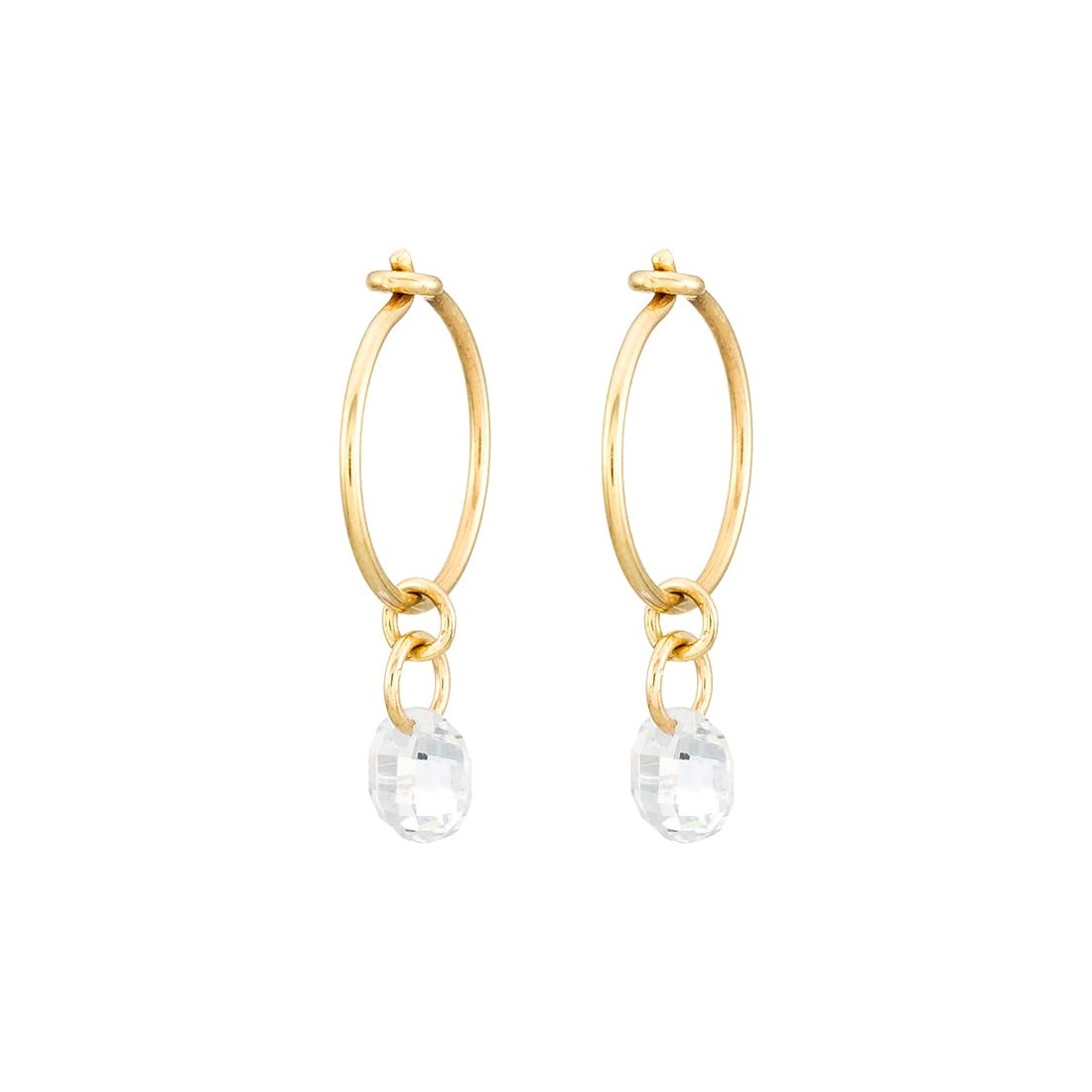 Pendientes Aro con Circonita color Blanca en Oro de 9K