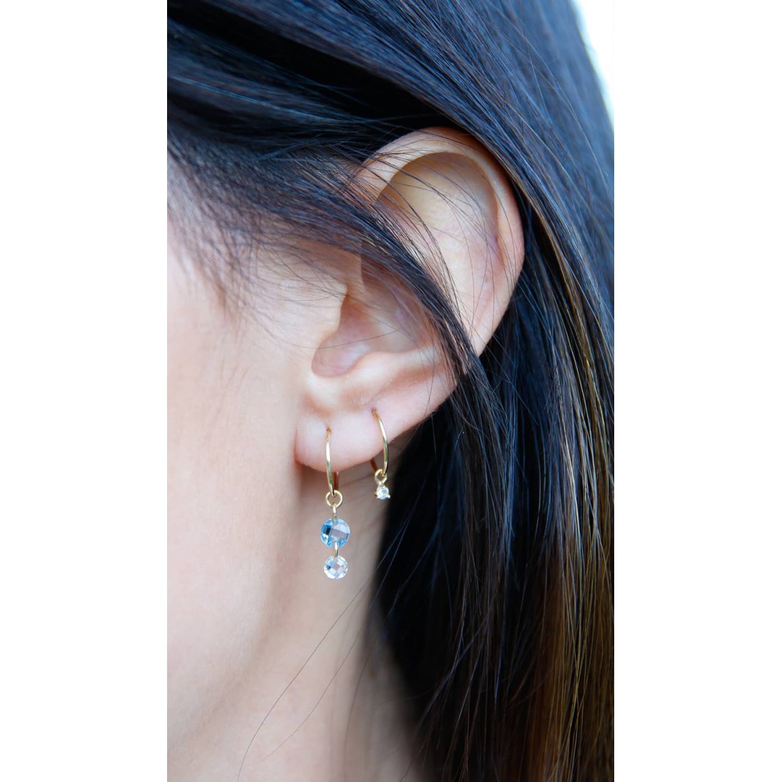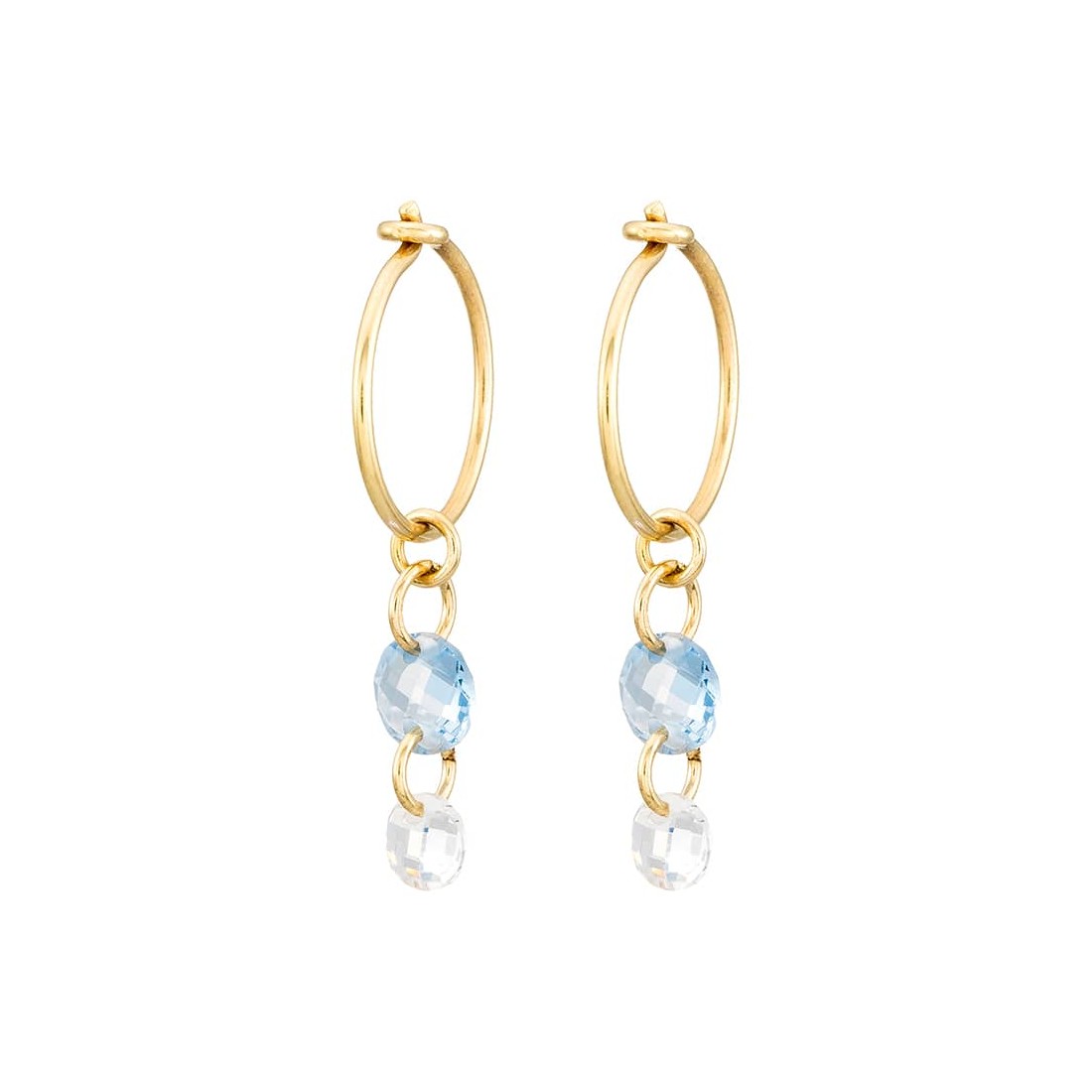 Pendientes Aro hilo 10 mm con circonita color azul de 5 mm y color blanco 4 mm